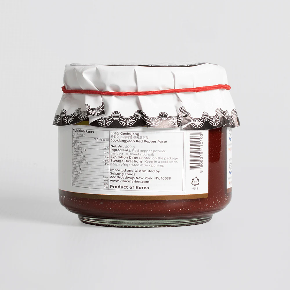 Jookjangyeon is nestled in the sunny valley of Jookjang-ri on Koreaโs east coastโan ideal climate for naturally fermented pastes. Their gochujang is handcrafted in traditional Onggi clay pots by local artisans.