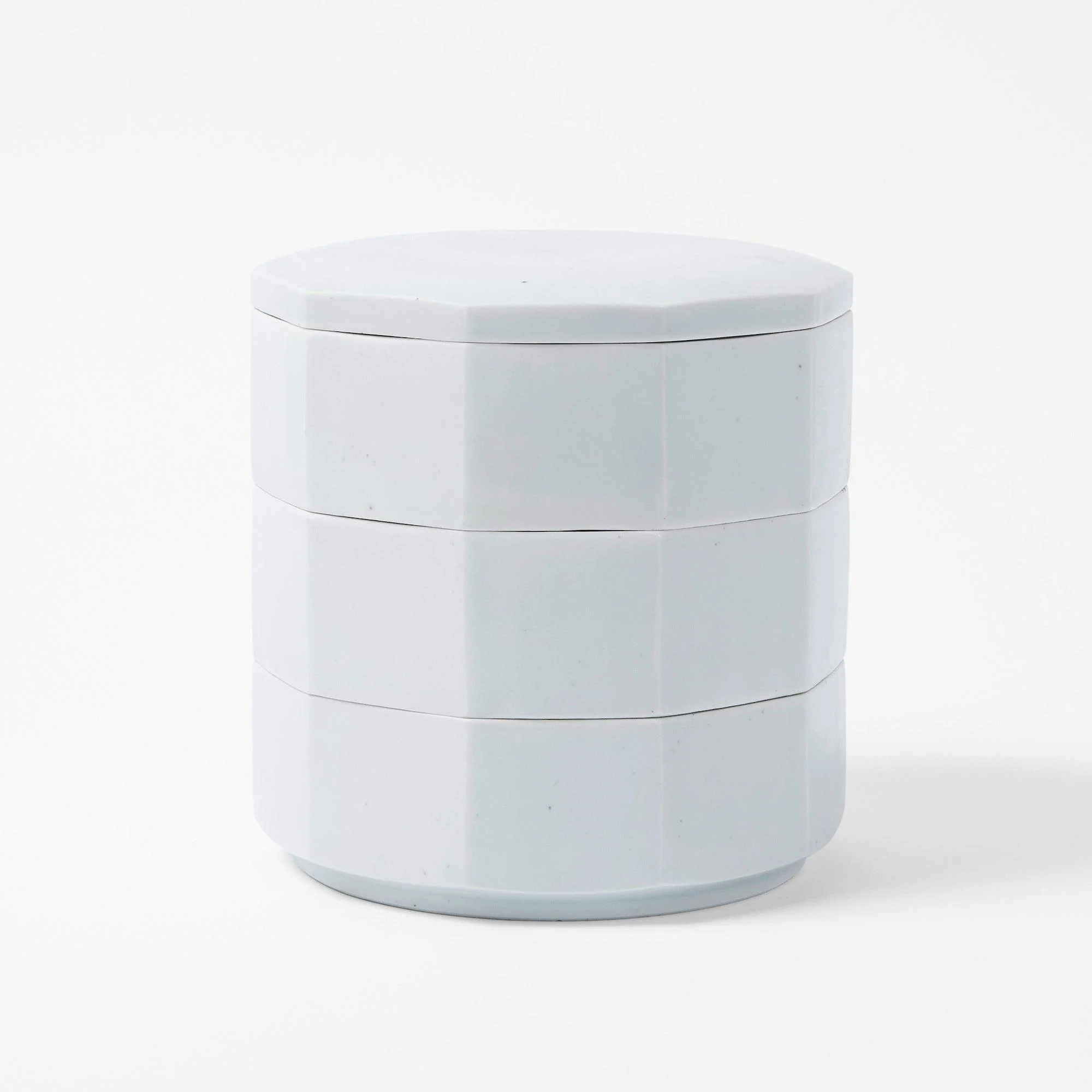 Perfect for serving or storing, these modular porcelain containers are stackable and handmade by HAEINYO artist Kim Sang-in.